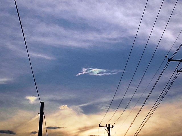 上の写真は、生まれて初めて見たかも知れない、虹色の雲です。