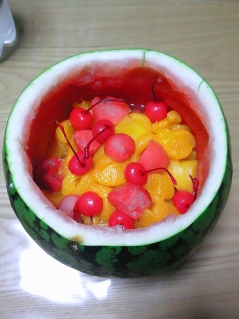 せっかく時間をかけてくり抜いたスイカの皮は捨てるのが心苦しかったので
